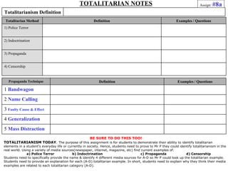 . Up to 24 cash back Propaganda used in a totalitarian regime. The government usually consists of a facist dictator. Mandatory military sign up.