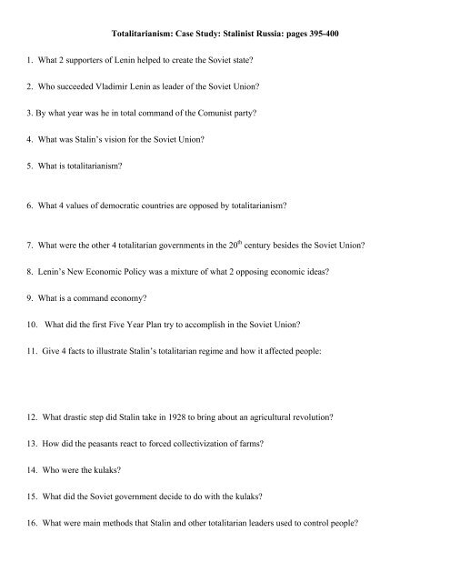 Totalitarianism Case Study Stalinist Russia Pages 395 400 1